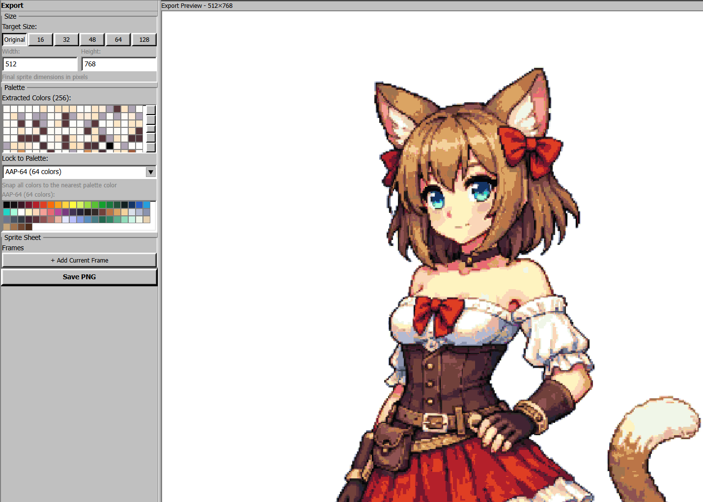 You also get palette locking (PICO-8, Game Boy, and more), resizing that respects the grid, and sprite sheet export, all in one place.